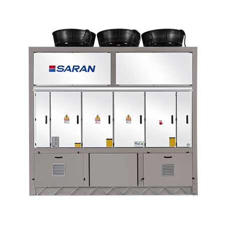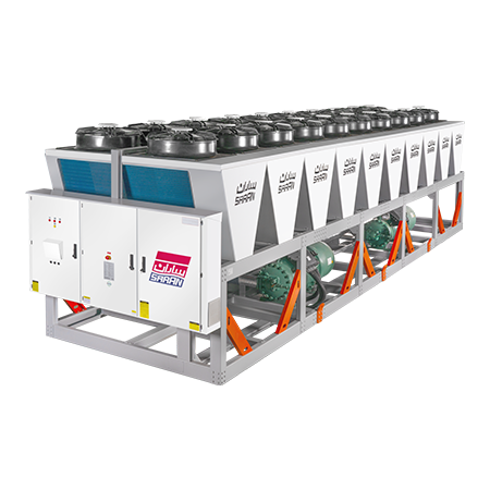 چیلرهای تراکمی هوا خنک مجزا ساران در ظرفیتهای 5 الی 720 تن تبرید با سه نوع کمپرسور اسکرو، رفت و برگشتی و اسکرال و قابلیت کارکرد با انواع مبردها نظیر R407C و R134a و R22 ساخته میشوند.